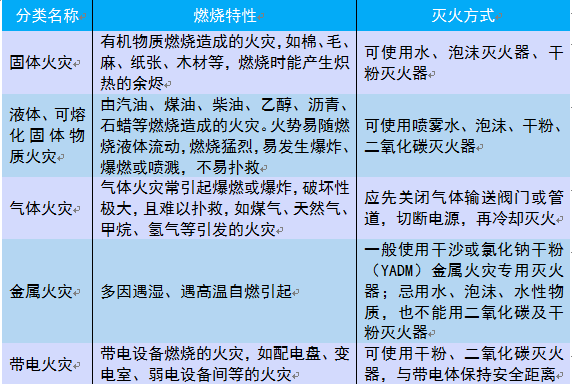 ◆根据火灾类型选择合适的灭火方式。